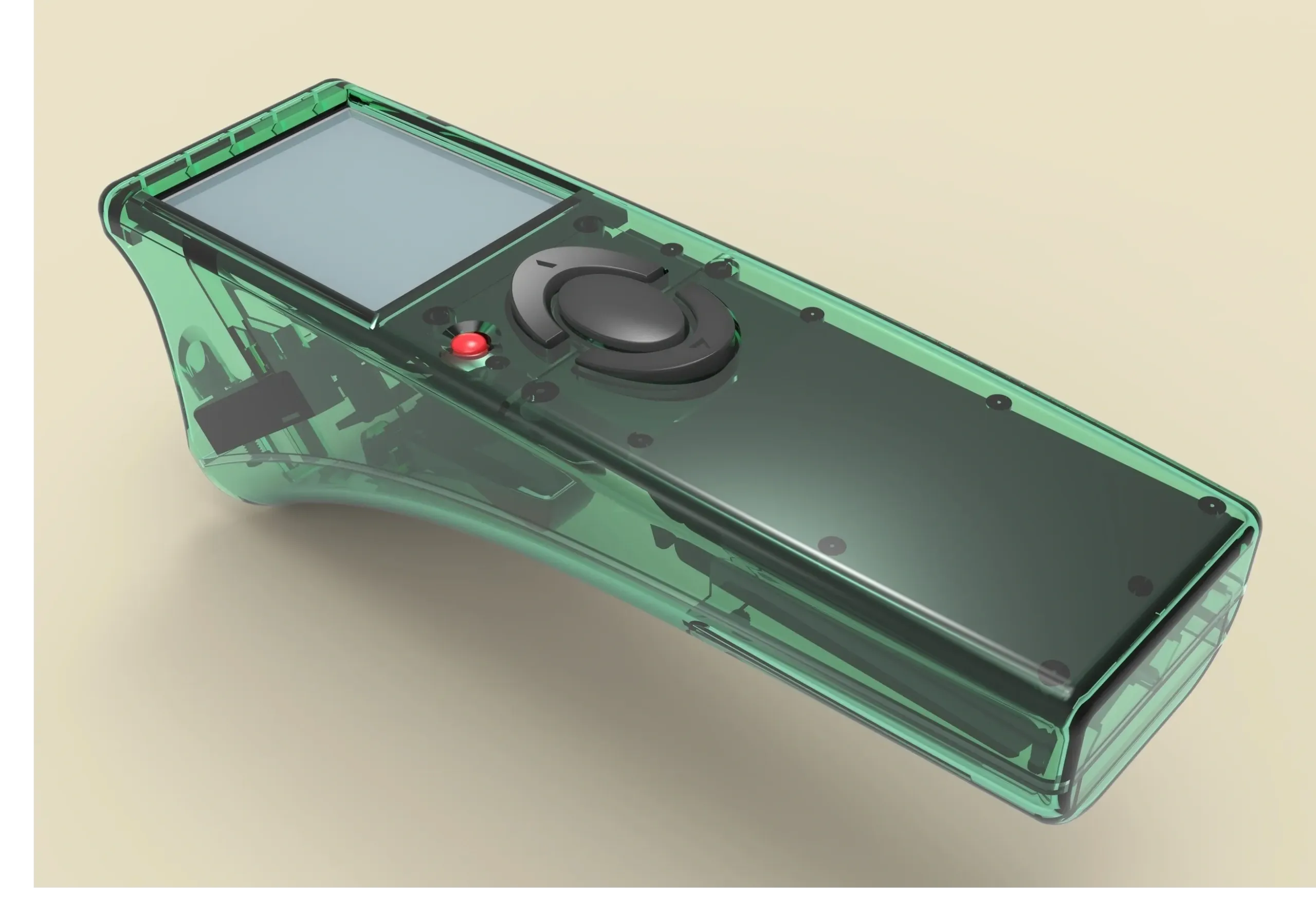A handheld device used to measure and calculate the health of a child using their age and mid upper arm circumference.