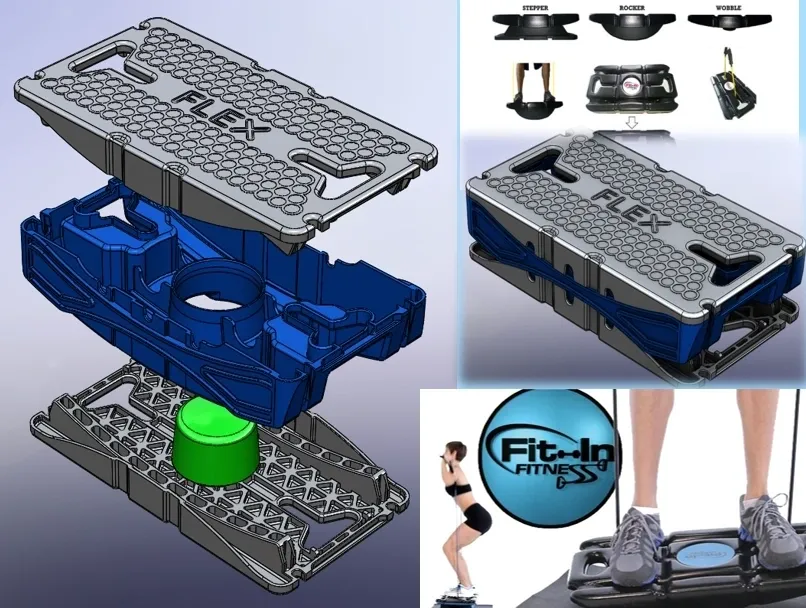 The Fit-In-Fitness Trainer is a compact portable cardiovascular/ strength training apparatus that consists of a stepper and two balance boards (wobble and rocker).
