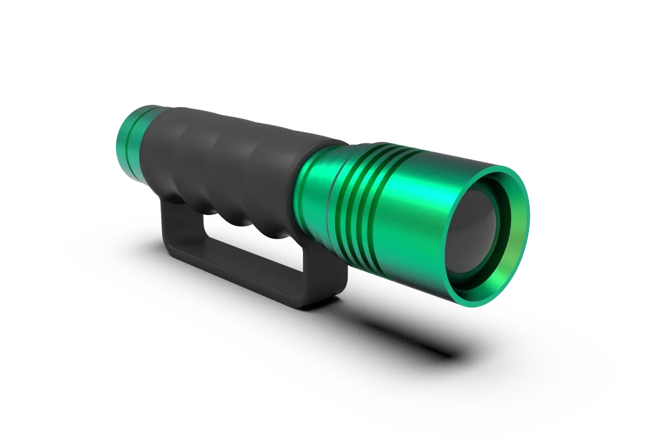 Flash Light with semisoft grip to insure a secure, non-slip, and pressure free position on your hand. .